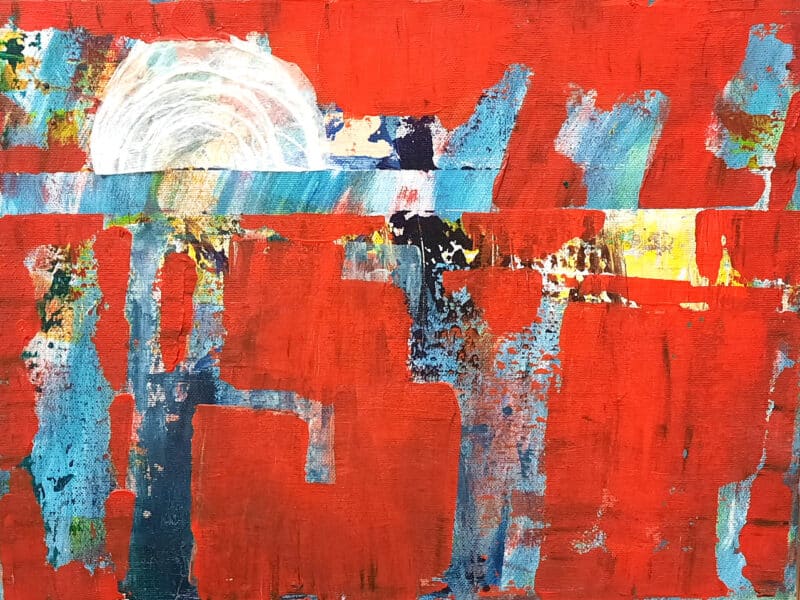 Monika Schiwy Collage Acryl; Papier auf Leinwand, gerahmt 30 mal 40 cm